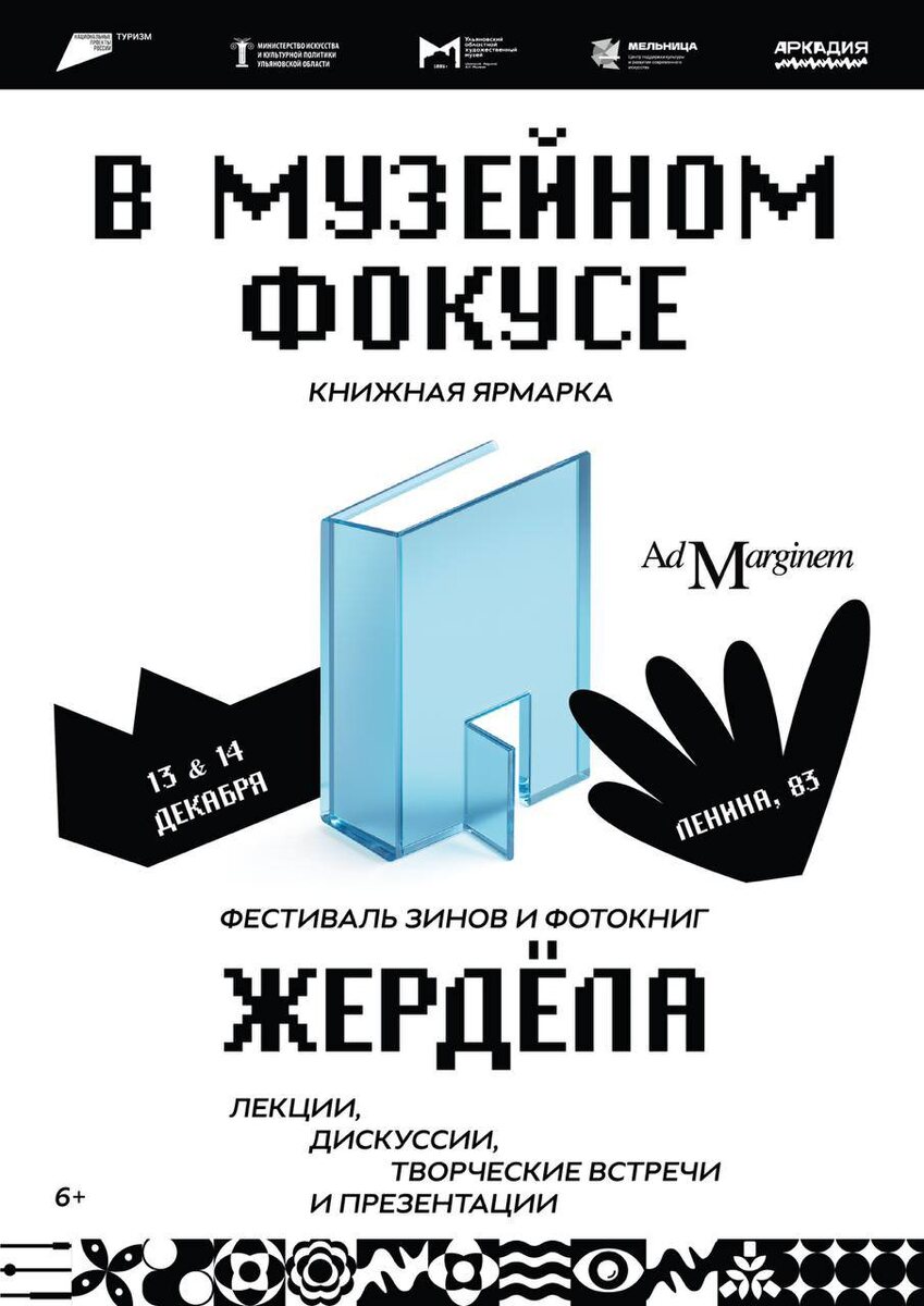 Книжная ярмарка «В музейном фокусе» 🗓️ 13 и 14 декабря с 12:00 до 20:00 📍МЦСИ, Ленина 83 В книжной ярмарке примут участие: · издательство Ad Marginem с книжными выходными · фестиваль зинов и фото-книг «Жердёла» Книжная ярмарка пройдет в Ульяновске уже в третий раз. В этом году внимание будет сосредоточено на профильной литературе: гуманитарные исследования, экспериментальная музеология, философия, фотография, зины и малотиражные издания, а также детские и иллюстрированные книги. 🤩13 декабря пройдет однодневная большая распродажа издательства Ad Marginem со скидками до 80% Издательство привезет более 1500 книг о философии, науке, искусстве, современной культуре, художественную и детскую иллюстрированную литературу. В продаже будут представлены как новинки, так и архивные, редкие книги, отсутствующие в обычных магазинах. 🤩Параллельно 13 и 14 декабря пройдет фестиваль зинов и фотокниг «Жердёла» Он объединяет авторов, художников и небольшие издательства, работающие с независи