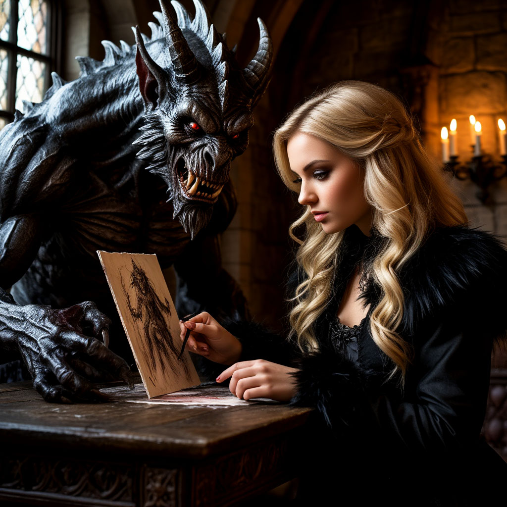 Лиля слушала, а сама рисовала, рисовала… Быстрыми мазками она старалась запечатлеть на холсте то самое чудовище, которое видела перед собой. Ей уже и смотреть на него было не нужно – облик запечатлелся в памяти так ясно, что она могла бы закрыть глаза – и увидеть его, вплоть до каждой шерстинки, вплоть до блеска красных глаз.