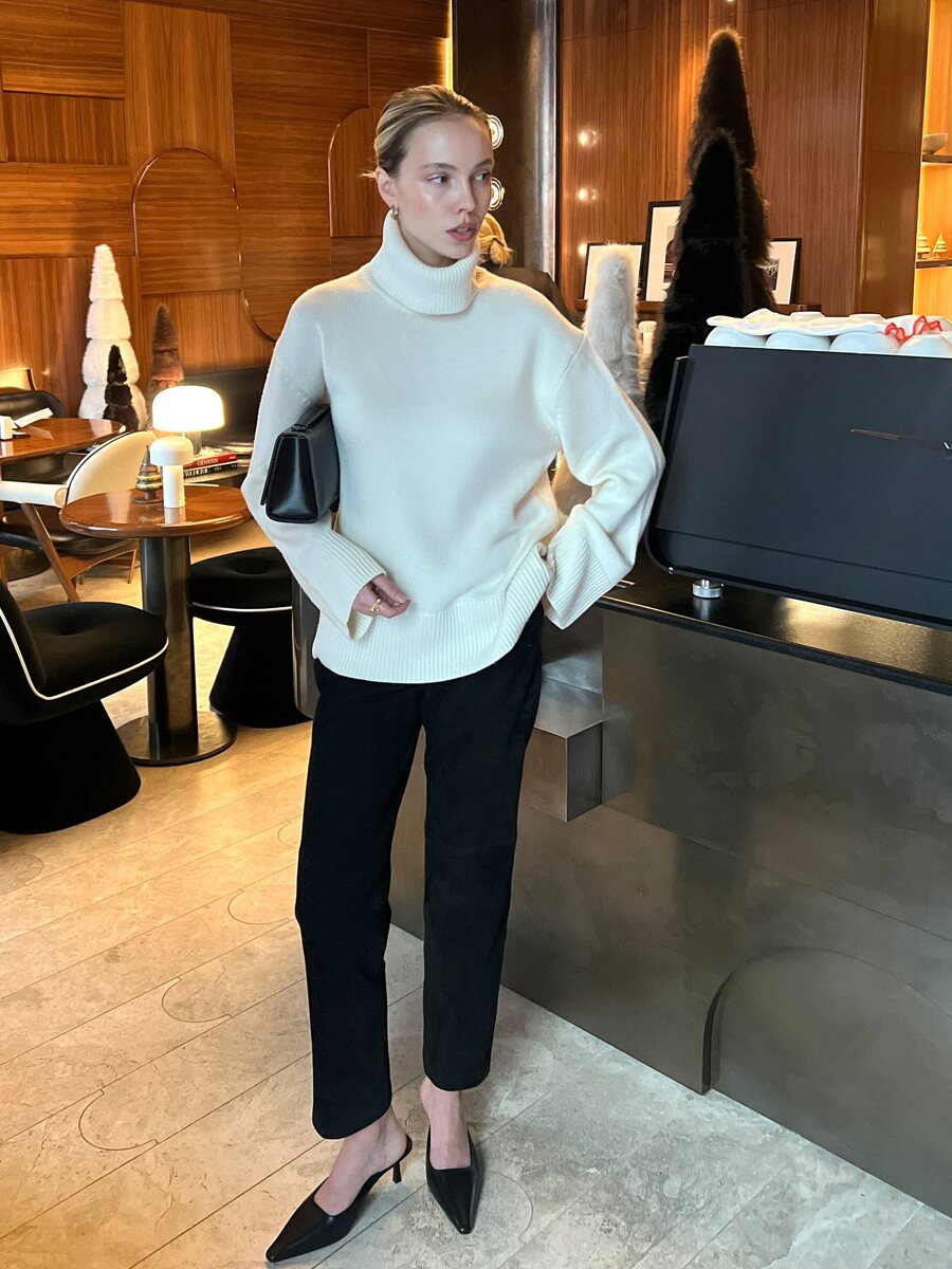 Новая версия модели Balance — свитер из шерсти и кашемира Для него мы выбрали новую пряжу: 70% шерсть мериноса и 30% кашемира. Она легче, чем пряжа 50/50, но такая же мягкая и теплая. У свитера свободный силуэт, резинки на манжетах и по низу держат форму, а высокий воротник защищает от холодного ветра. Носите его с прямыми брюками, юбками и любимыми джинсами — или создавайте свои комбинации в повседневных образах. Все изделия на зимний сезон ждут вас на сайте, в приложении и магазинах 12 STOREEZ 🤍12 STOREEZ