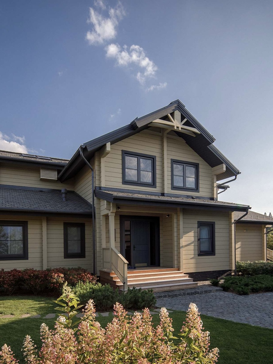 Проект дома Резиденс создан как пространство, где комфортно всем: детям, родителям и старшему поколению. В доме: 6 спален, 5 ванных, большие гардеробные на каждом этаже, кладовая на кухне и постирочная. Первый этаж — территория взрослых: гостиная, кухня с кладовой, столовая с выходом на террасу, главная спальня с ванной и приватной террасой, две спальни с собственными санузлами. Второй этаж — полностью детская зона: две комнаты, игровая, ванная и гардеробная, - полный автономный «мир детей». Проектирование и строительство — ПАЛЕКС дома из клееного бруса Интерьер, фасады и террасы — Анна Павловская Pavlovskaya Interiors Ландшафт и уход за садом — Easy Bureau Ландшафтный проект — Александр Кушунин