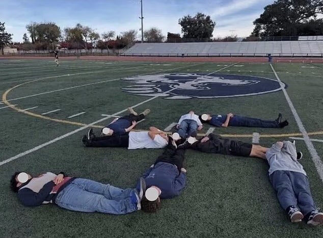 Ученики одной из школ в Калифорнии выложили своими телами свастику на футбольном поле, а фотографию выложили в Instagram (соцсеть