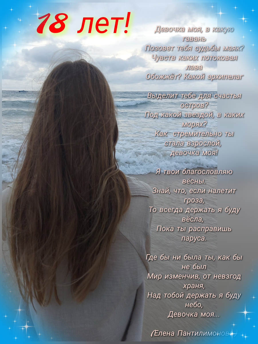 Доброго дня вам, мои читатели! Сегодня день рождения у моей младшей дочки. Поздравляю её с 18-летием. Мою уже такую взрослую, мою еще такую маленькую девочку... Девочка моя, в какую гавань
