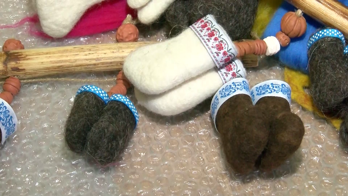 В муниципалитете помнят и чтят традиции войлочного промысла. Только теперь здесь создают не обувь, а обереги – крошечные валенки, в народе их называют шептуны. Талисманы, сделанные с душой и молитвой, станут частичкой дома для тех, кто сейчас на передовой. Техника мокрого валяния неизменна десятилетиями: шерсть тщательно смачивают в мыльном растворе и притирают – запутывают между собой, чтобы получился войлок. Так делают и большие валенки, и такие крошечные. Называют эти игрушки – шептуны. «Ты нашептываешь свои пожелания, свои обиды, всё, что душе угодно, ты выговариваешь этим валенкам, они тебе помогают. Такой символический оберег, который по поверьям раньше был у каждого члена семьи», – рассказала директор Волоконовского дома ремёсел Ирина Костылёва. Многие мастерицы дома ремёсел в валенках ходили в школу или на горку. Теперь работа с шерстью словно машина времени. В советское время в Волоконовке делали настоящие валенки, причём в промышленных масштабах. В местном музее есть сведе