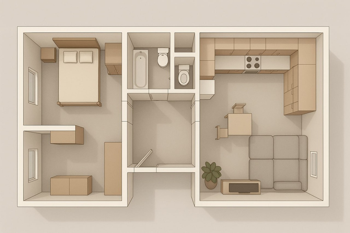 Квартира-«распашонка» — что это, кому подходит и на что смотреть 🤸 Что такое «распашонка»? Простыми словами — это планировка, где жилые комнаты расположены по обе стороны от входа, а между ними чаще всего находятся кухня, санузел и коридор. Название — от старой «распашонки» (кофточки): вход — как горловина, комнаты — как рукава, расходящиеся в разные стороны. 📐 Откуда пришла планировка? Это решение массовой застройки прошлых десятилетий — экономное и практичное. Но в современных новостройках «распашонка» выглядит совсем иначе: проектируют с нуля, закладывают эргономику, увеличенные кухонные зоны, продуманные прихожие и места для хранения. «Квартира-распашонка в современном ЖК — это осознанное архитектурное решение, созданное под запросы покупателя. Это больше не пережиток прошлого, а удобный формат», — отмечает руководитель отдела продаж СЗ Сапсан Туяна Будажанаева. Почему это удобно: ➖ Изолированные комнаты — у каждого появляется своё личное пространство; звук и приватность на