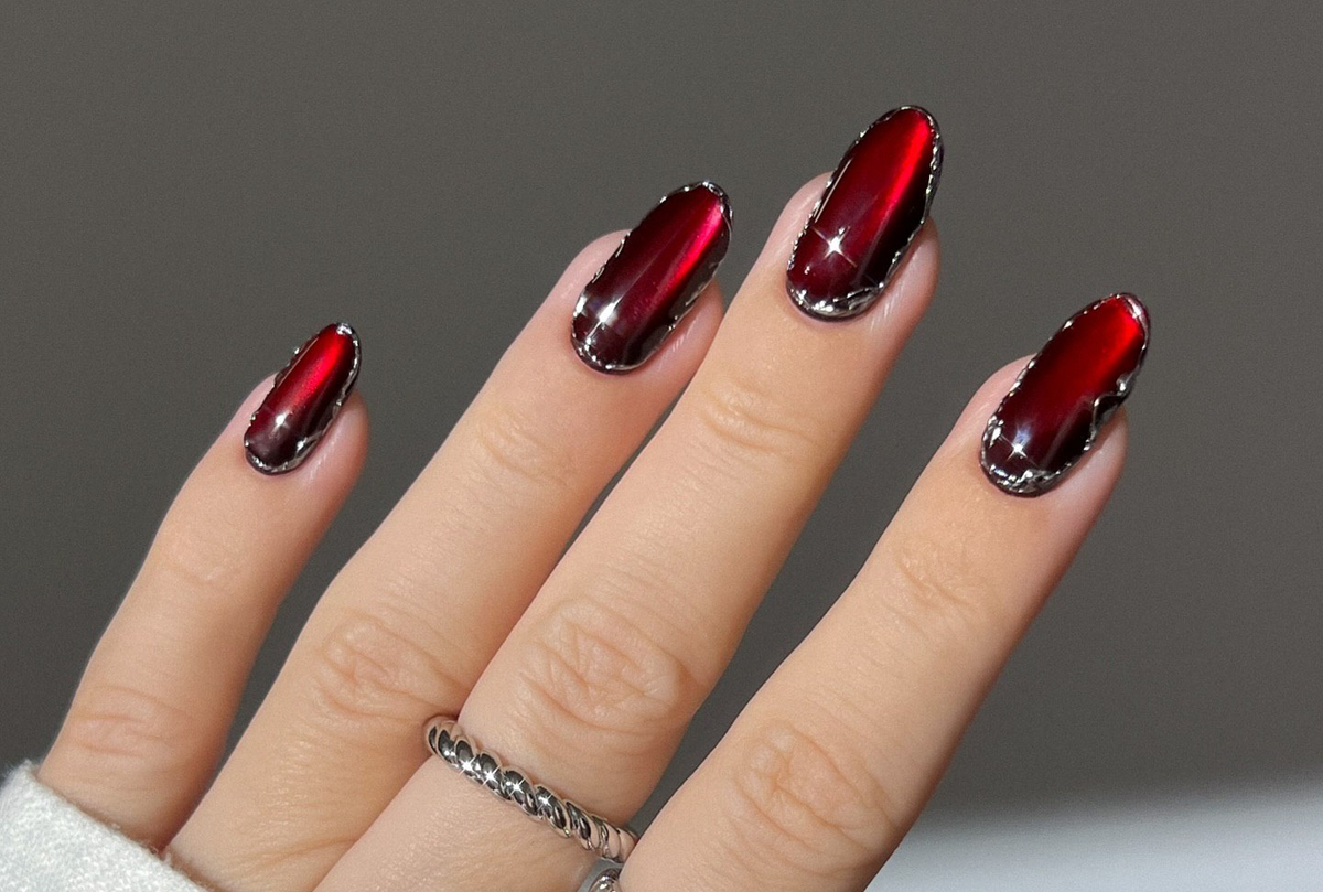 «Кошачий глаз» снова в тренде. Такой маникюр будто играет светом изнутри. Он делает образ чуть более уверенным и собранным. Зимой этот эффект работает особенно хорошо: блеск сочетается и с плотными свитерами, и с праздничными платьями, и с самыми спокойными повседневными образами. Если хочется начать с чего-то нежного, подойдёт персиково-розовый вариант. Он выглядит чисто и мягко, но за счёт фирменного блика не теряется даже на длинных ногтях. Такой оттенок создаёт впечатление аккуратности и спокойного комфорта, будто на руках лёгкий бархат. Универсальный вариант для тех, кто любит скромную, но выразительную эстетику. Для поклонниц насыщенной палитры есть глубокий вишнёвый тон. В нём чувствуется уверенность — оттенок напоминает глянцевый камень, отполированный до зеркального блеска. Он отлично работает в паре с вечерними нарядами, но и в сочетании с уютным трикотажем выглядит гармонично. Такой маникюр всегда привлекает взгляд без лишних усилий. Шоколадный вариант подойдёт тем, кто