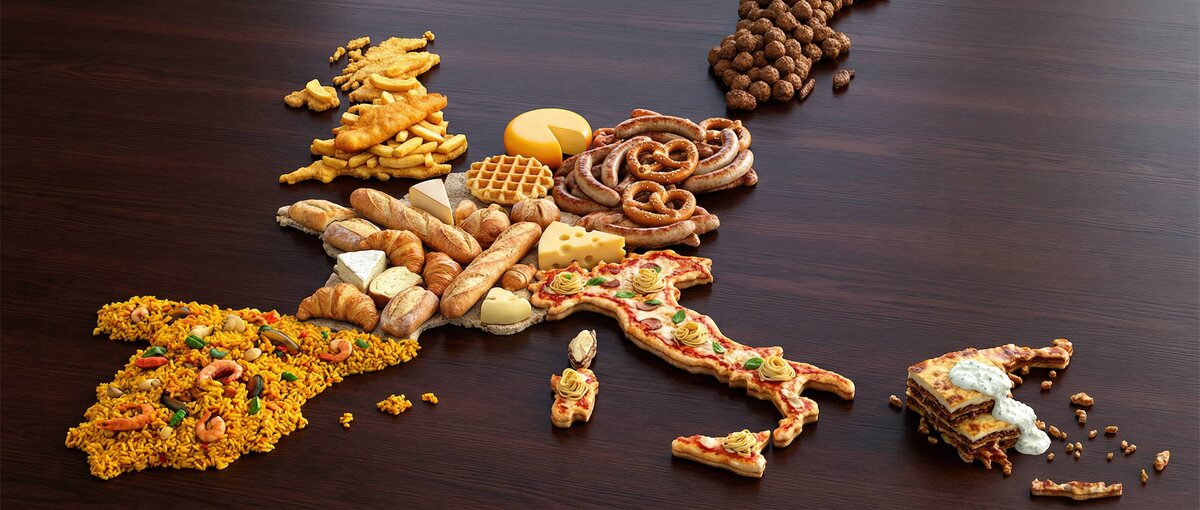 ПРИМЕР ИСПОЛЬЗОВАНИЯ NANOBANANA 🔠🔠🔠 Пример создания 3д карт) create a map of the Europe where every state is made out of its most famous food (the states should actually look like they are made of the food, not a picture of the food). Check carefully to make sure each state is right. Create a high-detail 3D isometric diorama of the entire Europe, where each state is represented as its own miniature platform. Inside each state, place a stylized, small-scale 3D model of that state's most iconic landmark. Use the same visual style as a cute, polished 3D city diorama: soft pastel colors, clean materials, smooth rounded forms, gentle shadows, and subtle reflections. Each landmark should look like a miniature model, charming, simplified, but clearly recognizable. Arrange the states in accurate geographical layout, with consistent lighting and perspective. Include state labels and landmark labels in a clean, modern font, floating above or near each model. Если понравилось, ставьте 👍