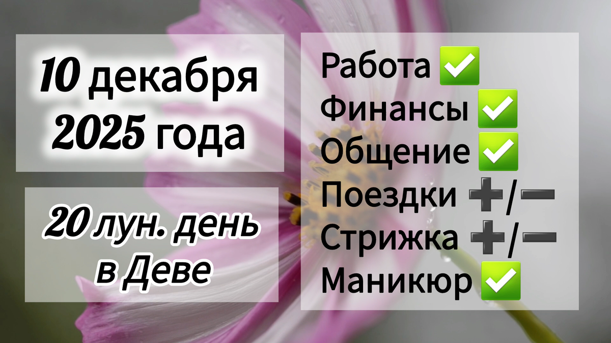 До 10 часов 20 минут будет Луна без курса. Это время считается неблагоприятным для начала любой деятельности и принятия ответственных решений. Высока вероятность допустить ошибки. Лучше заниматься обычными повседневными делами, не требующими повышенной концентрации. Избегайте подачи заявлений, подписания документов, трудоустройства на новую работу, крупных покупок и хирургических операций. После 10 часов 20 минут наступает энергетически насыщенное время, благоприятное для активных действий. Можно смело начинать крупные проекты (особенно если они обдумывались заранее). Если вы верно спланируете свои дела, то день удивит вас полученными результатами. Для денежных операций период очень благоприятный. Можно делать крупные покупки и инвестировать. Отличный день для любого общения. Хорошо разрешать давние конфликты и возобновлять отношения. Также день благоприятен для косметологических процедур, маникюра и педикюра.