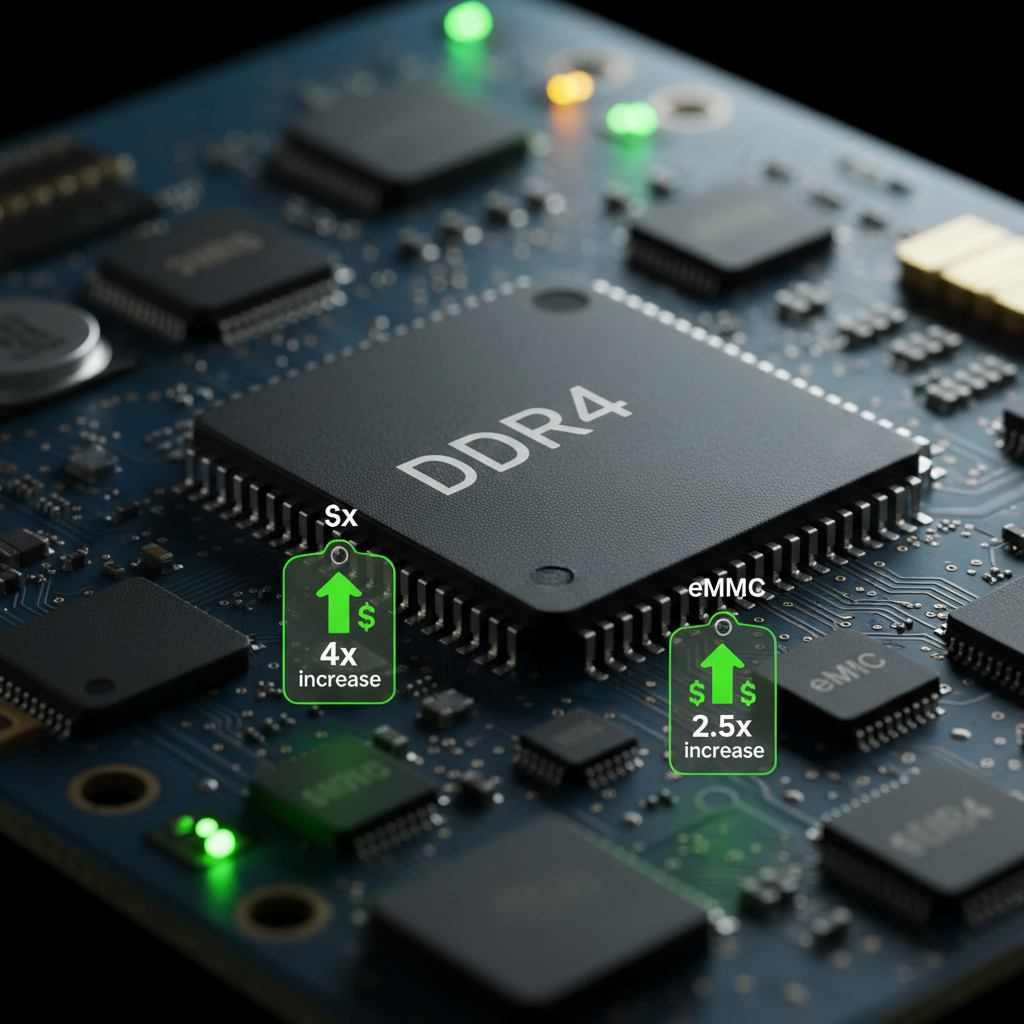 Глобальный рынок электроники переживает один из самых серьёзных кризисов последних лет. Микросхемы памяти, ставшие основой для производства смартфонов, взлетели в цене на фоне бума искусственного интеллекта. И если флагманские устройства как-то справляются с этим, то недорогой сегмент сталкивается с угрозой, производители задумываются о переходе на более скромные объёмы памяти, а покупатели готовятся к росту цен на десяток процентов. Цифры шокируют: память подорожала в 4 раза Начало 2025 года казалось обычным. Микросхема памяти LPDDR4X объёмом 4 ГБ стоила около $7. К ноябрю эта же микросхема подорожала до $30 - рост более чем в 4 раза. Флеш-память eMMC объёмом 64 ГБ подорожала менее драматично, но всё равно существенно: с $3,2 до $8, что составляет увеличение в 2,5 раза. Микросхемы памяти DDR4 и eMMC с указанием роста цен Это не спекуляция отдельных производителей. Все ведущие мировые производители оперативной памяти - Micron, Samsung и SK hynix уже либо полностью прекратили выпуск D