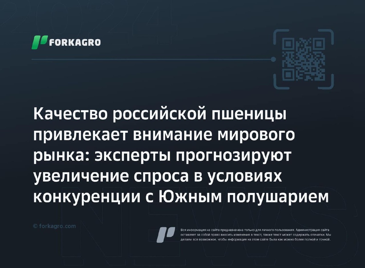 Качество российской пшеницы привлекает внимание мирового рынка: эксперты прогнозируют увеличение спроса в условиях конкуренции с Южным полушарием Эксперты считают, что российская пшеница может стать конкурентоспособной на мировом рынке из-за высокого качества. Увеличение урожая пшеницы в Аргентине и Австралии приведет к снижению цен. Однако аргентинская пшеница имеет низкое качество из-за низкого содержания белка. Российская пшеница оценивается выше, цена на нее меньше. Прогнозируется увеличение спроса на российскую пшеницу из-за лучшего качества. В России качество урожая пшеницы 2025 года улучшилось по сравнению с предыдущими годами. Перейти к источнику