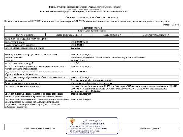 Название: Земельный участок из земель сельскохозяйственного назначения сроком на 5 лет, расположенный по адресу: Омская область, Любинский