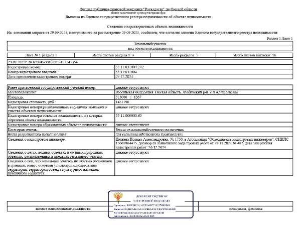 Название: Земельный участок из земель сельскохозяйственного назначения сроком на 5 лет, расположенный по адресу: Омская область, Любинский
