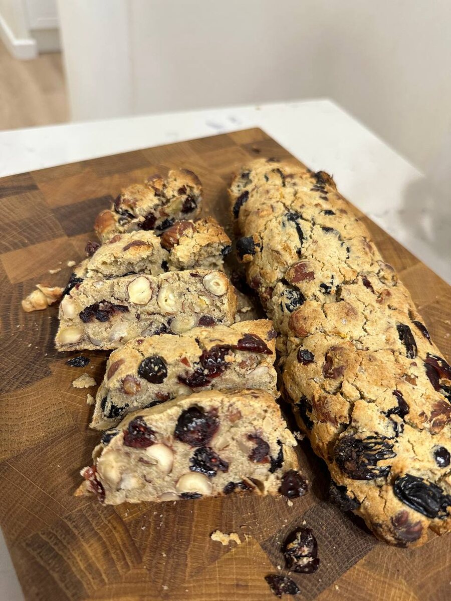 ⁃ Мам, ты видимо шутишь, купила печенье, а мне говоришь, что сама приготовила… ⁃ Нет, сынок, я правда сам видел, как мама его готовила ⁃ Мамочка, ты всегда готовила невероятно вкусно, но это просто 100 из 10 Предлагаю сегодня наполнить ваш дом невероятным ароматом свежеиспеченного печенья Итальянское Бискотти на полезный манер😌 ▫️Клюква 50 гр ▫️Изюм 50 гр ▫️Фундук 70 гр ▫️Апельсин 1 шт ▫️Мука зеленой гречки 100 гр ▫️Мука сорго 100 гр ▫️Сок лимона 1 ч л ▫️Сода 1/4 ложки ▫️Масло 2 ст л Все максимально просто👌🏼сухофрукты, орехи смешиваем и заливаем соком 1 апельсина Добавляем масло, муку, соду и лимонный сок. Все хорошо перемешиваем. Формируем 2 колбаски и отправляем в духовку на 180 градусах на 20-25 минут Достанем, разрезаем и отправляем кусочки подсушить еще минут на 7-10 Даем полностью остыть. Вначале будет мягким, но когда печенье остынет, то станет хрустящим Я всегда использую Орехов больше, но за счет этого оно становится более рассыпчатым и уже не получ