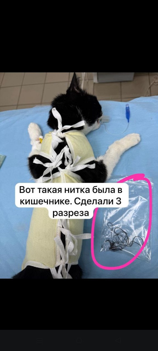 Астрахань 🆘ИНОРОДНОЕ ТЕЛО! Срочно нужна помощь🆘 Коту нужна операция по извлечению инородного предмеиа из кишечника. Стоимость 8-10 тыс. Котика нашли на улице. Он лежал в странной позе и отказывался от еды. На осмотре обнаружили нитку из горла. Нитка ушла глубоко. Смотрите фото☝️ Кот уже совсем слабый. Сколько эта нитка у него внутрии не понятно. ‼️Денег на операцию нет. Операция обошлась в 10000 руб +капельницы будут по 1700₽ Сколько их сделают, будут смотреть по состоянию. Котику сейчас нужно щадящее питание. Тел для помощи +7 937 504-71-58 сбер Ринат. #кошка_инородное_тело