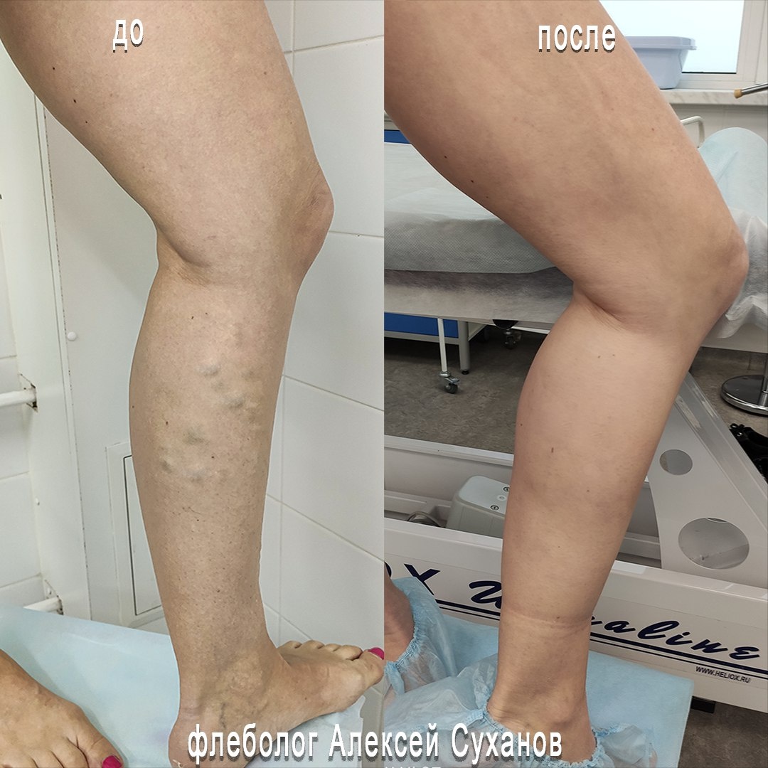 Результат через 6 месяцев после лазерной операции по поводу варикоза и микрофлебэктомии.
