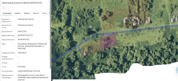 Название: Земельный участок из земель населенных пунктов с кадастровым номером 58:28:0070101:273, общей площадью 1400 кв.м., с видом