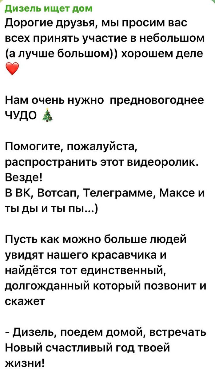 Дорогие соседи. Нам не принципиально кто услышит объявление о Дизеле: наши или не наши) Хорошие люди есть везде. Очень просим помочь в распространении информации❤️