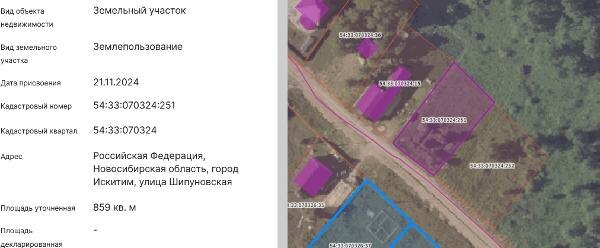 Название: земельный участок с местоположением: Российская Федерация, Новосибирская область, город Искитим, улица Шипуновская, кадастровый