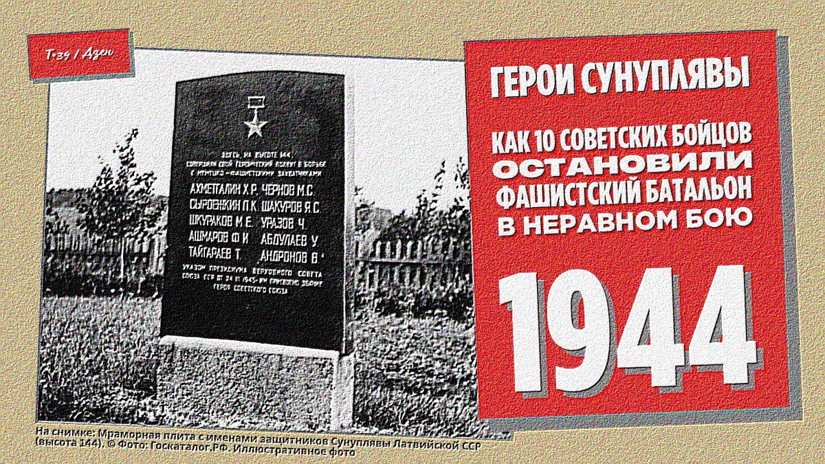 Сегодня на небольшой возвышенности у латвийской деревни Сунуплява стоит обелиск. Гранит, на нём высечены имена. Десять имён советских солдат. Вокруг — полевые травы и цветы, тишина мирная. Трудно представить, что когда-то здесь грохотали взрывы, свистели пули, лилась кровь.