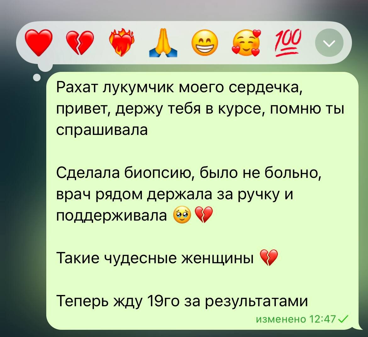 Это я отчитываюсь своим о пройденной биопсии. Вам тоже рассказываю, что это не страшно и как сказали врачи «главное во время спохватиться». Нереально благодарна себе, что решилась на чек ап. Нереально благодарна себе, что протерапевтировала нарц травму и за❄️бы, с которыми казалось «ну всё же нормально! зачем мне врачи?». В целом за время пока ждала дату биопсии, оказалось, что кто-то из моих подруг живет с таким высокоонкогенным штаммом всю жизнь. У других знакомых он перерос в рак высокой стадии и они справились без химии. Стало спокойно и хорошо. Теперь жду 19го, чтобы узнать результаты, создает этот штамм у меня онко 🦞 или нет. Но к онкопсихологу я уже сходила)) рассказать вам об этом опыте и о терапии симптомов?