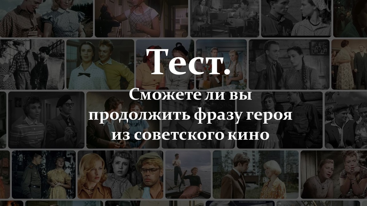Советское кино подарило нам десятки фраз, которые давно превратились в крылатые выражения и живут в нашей речи до сих пор. Мы цитируем любимых героев, порой даже не вспоминая, из какого именно фильма пришла та или иная реплика. Сможете ли вы продолжить знаменитую фразу, услышав лишь её начало? Всплывёт ли в памяти нужное слово, интонация, настроение сцены? А может, вы легко узнаете героя — и сразу мысленно перенесётесь в тот самый момент на экране? Готовы испытать себя и проверить свою кинематическую интуицию? И так поехали? Подписывайтесь на канал, чтобы не пропустить новых, интересных статей и тестов.