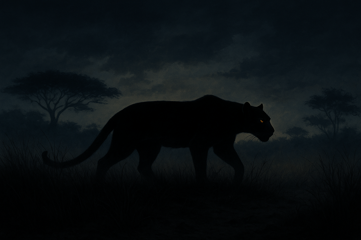 Африканские саванны и тропические леса хранят множество тайн, и одна из самых загадочных — Мгва, или М'гва — крупная хищная кошка, о которой рассказывают племена Уганды, Танзании и Камеруна. Это существо почти никогда не показывается людям, но его следы, повадки и силуэт описаны удивительно последовательно в рассказах разных народов. Мгва — это не леопард и не сервальная кошка. В африканском фольклоре она занимает отдельное место: странная, необычно смелая, будто неуязвимая, и при этом — скрытная, как дух леса. Как выглядит Мгва? По рассказам охотников, Мгва напоминает крупного леопарда или пантеру, но с особыми чертами: массивное тело, коренастее леопарда; короткая, плотная шерсть тёмного серо-бурого цвета; широкая морда и удлинённые клыки; необычный, почти не слышный шаг; глаза, которые светятся красным или жёлтым в темноте. Некоторые описания называют её «львом без гривы», но меньше по размеру. Другие сравнивают с «гигантской степной кошкой», которая ведёт себя совсем не так, как о