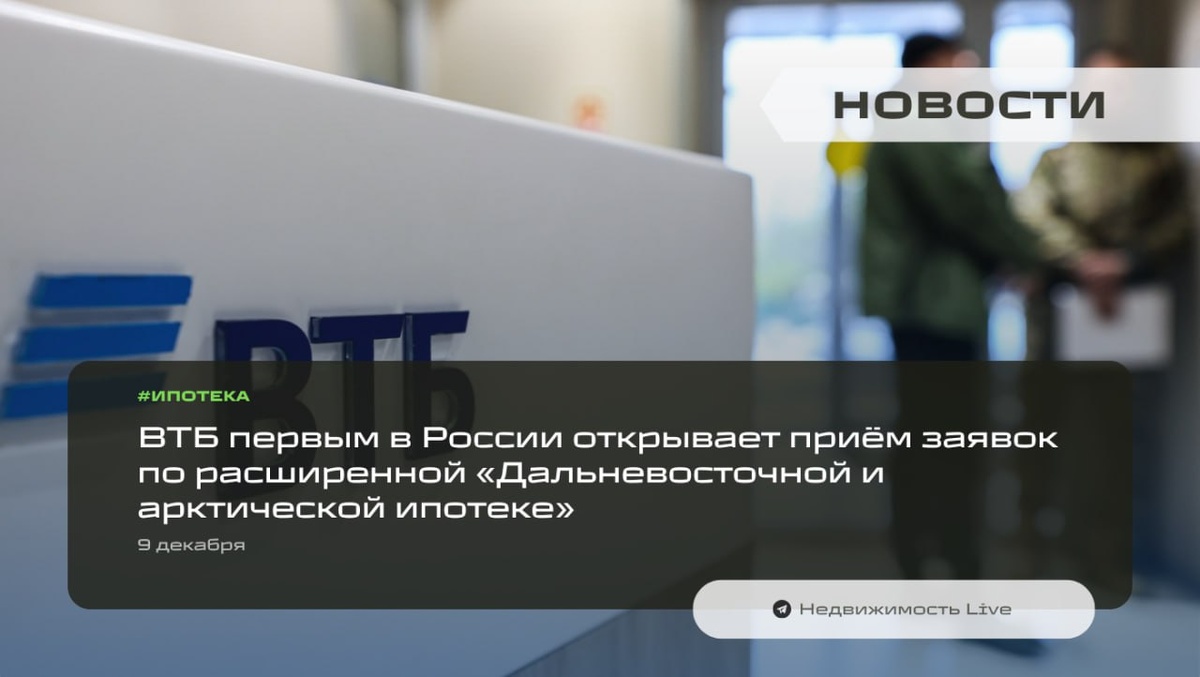 ⚡️ ВТБ первым в России открывает приём заявок по расширенной «Дальневосточной и арктической ипотеке» — с 9 декабря льготный кредит смогут