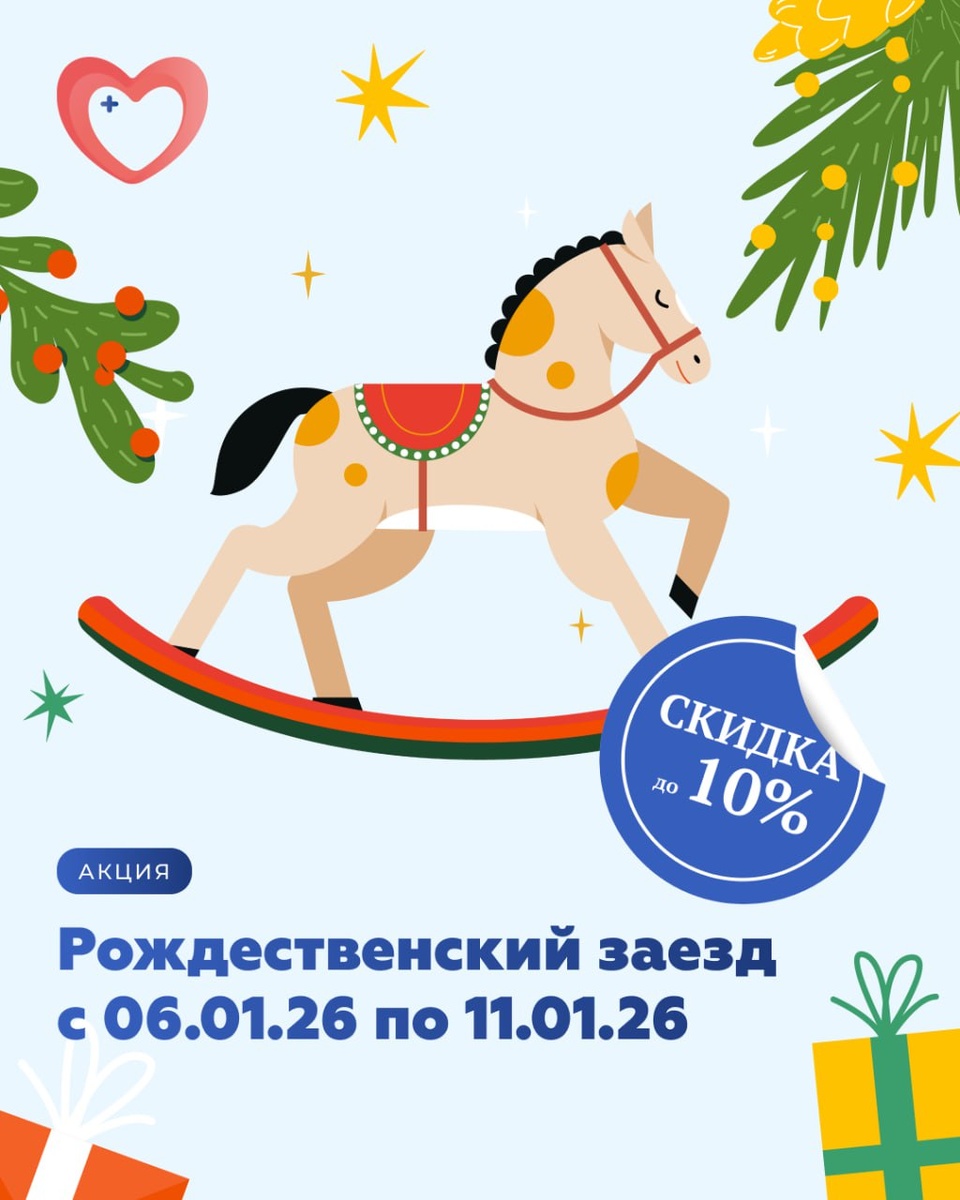 Скидка 10% при бронировании Рождественского заезда! 🎄 ⠀ Подарите себе и близким волшебный Рождественский заезд в рамках тура «Новогодний карнавал» по наиболее выгодной цене. ⠀ Период заезда: с 6 по 11 января 2026 года. ⠀ Это прекрасная возможность: ⠀ ✅ Плавно и с пользой завершить череду праздников. ✅ Насладиться спокойствием и уютом в окружении зимнего леса. ✅ Восстановить ресурсы организма с помощью лечебных и оздоровительных процедур. ✅ Стать участником специальной праздничной программы! ⠀ Успейте оформить бронирование по телефону 📞 +7 (495) 105-90-92