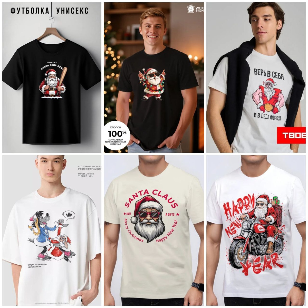 🌟☃️Футболки с новогодним принтом ☃️ 1️⃣Кто тут плохо себя вёл? https://www.wildberries.ru/catalog/299591132/detail.aspx 2️⃣"Санта на чилле" оверсайз https://www.wildberries.ru/catalog/548330639/detail.aspx 3️⃣Футболка с принтом Деда Мороза https://www.wildberries.ru/catalog/566896518/detail.aspx 4️⃣Футболка новогодняя с принтом Союзмультфильм https://www.wildberries.ru/catalog/545796496/detail.aspx 5️⃣Футболка с принтом новогодняя "Дед Мороз" https://www.wildberries.ru/catalog/558024927/detail.aspx 6️⃣Дед Мороз на байке https://www.wildberries.ru/catalog/536636296/detail.aspx