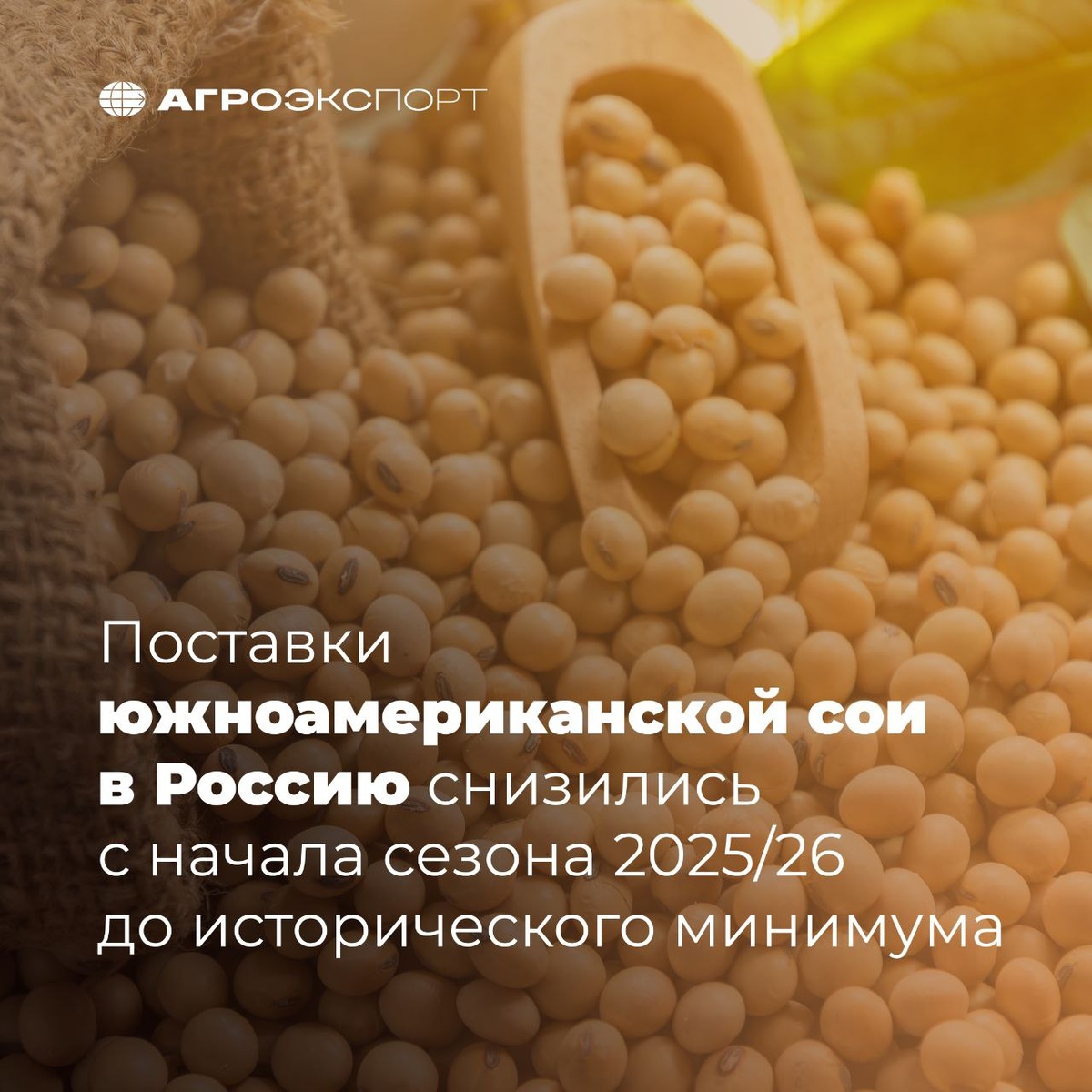 Поставки южноамериканской сои в Россию снизились с начала сезона 2025/26 до исторического минимума