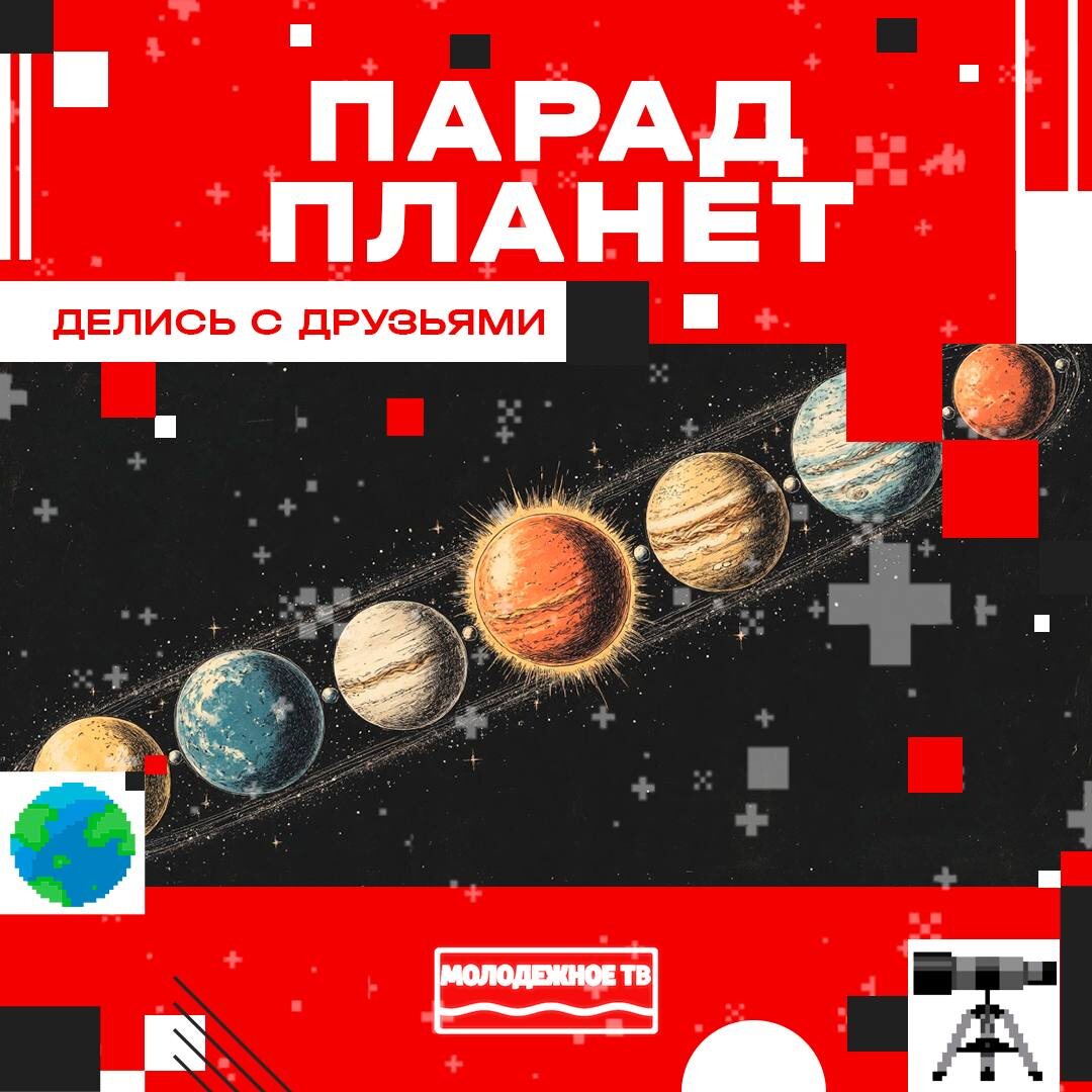 🤩🤩🤩🤩🤩🤩 🔭Впервые за 6️⃣ лет в небе сформируется солнечный парад планет, который продлится до конца января и можно будет увидеть через бинокль. 🌍Планеты подойдут к Солнцу на угловое расстояние меньше 1️⃣0️⃣ градусов. 7️⃣ января — Солнце, Венера, Марс и Земля выстроятся в линию. 2️⃣2️⃣ января к ним присоединится Меркурий, образуя ромб. Подобное случится лишь в 2️⃣2️⃣3️⃣5️⃣ году. ✨Планеты будут далеко друг от друга, но с Земли покажутся рядом. Явление редкое и безопасное — не предвещает катастроф, а ученые используют его для гравитационных маневров. 🤩 МЫ В ВК | 🤩 МЫ В MAX #клин #клинзвучит #молодежноеТВ