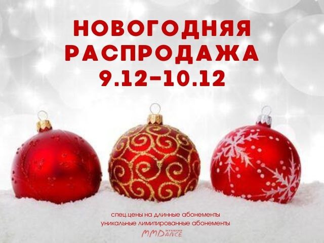 🎄НОВОГОДНЯЯ РАСПРОДАЖА ❄ 2 ДНЯ самых вкусных предложений - с 14:00 9 декабря и до 22:30 10 декабря. ⭐ НОВЫЕ АБОНЕМЕНТЫ, доступные в рамках этой распродажи. Абонемент ДЕБЮТ - 4 часа за 1 неделю - Пробный абонемент для тех, кто еще не был в нашей студии, но очень хочет окунуться в мир танцев. действует только на разные направления.-1490 р - 20 шт. Абонемент ЗИМА - 16 часов на 16 недель - идеально для тех, кто хочет не переставать танцевать, но знает о возможных загрузках, поездках на январски и не только. - 12990 р + 5 сампо - 4 шт. Абонемент СКАЗКА - 36 часов на 12 недель (3 мес) - это по 3 часа в неделю - для тех кто, и на безлимит не решается, и тренить хочет больше. - 19990 р + 15 сампо +билет на Новогоднюю вечеринку 27.12 - 4 шт Абонемент ЛАЙФСТАЙЛ - 72 часа на 48 недель (6 мес) - для настоящих спортсменов и влюбленных в танцы людей - 38990 р +35 сампо + билет на Новогоднюю вечеринку 27.12 - 2 шт 🔥 ВЫГОДНЫЕ ПРЕДЛОЖЕНИЯ на классические АБОНЕМЕНТЫ НА ЗАНЯТИЯ: Абонемент Мега