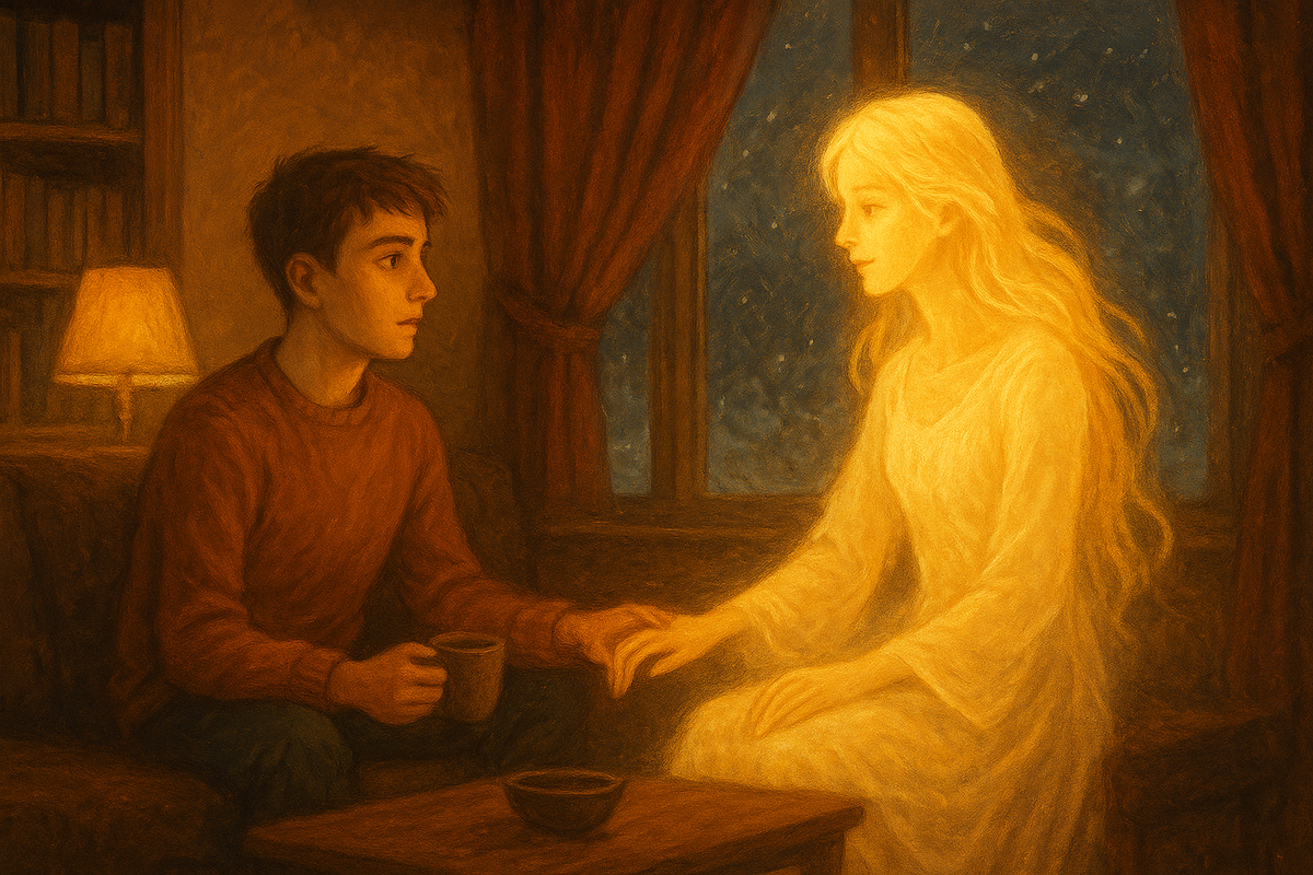 Снова я участвую в литературном конкурсе, на этот раз задания интересные, и я в очередной раз буду прокачивать свои писательские навыки) Предлагаю вашему вниманию мою новую историю. надеюсь, вам понравится. Полуденная гостья За окном бушевала метель, кидая на стекла тяжёлые хлопья снега. Ветер стонал в щелях старых рам, а в квартире Ильи, задумчивого и тихого городского одиночки, было тепло и почти спокойно. Он сидел в кресле, поджав ноги под плед, и держал в руках кружку имбирного чая. Вообще, он был странным парнем, не ходил с друзьями по ночным клубам, не интересовался девушками, да собственно, и друзей-то у него не было. Все, с кем ему приходилось общаться, покручивали у виска, считая его ненормальным. Но ему было все равно. Илья никогда не любил шумных вечеров- ему были ближе книги, приглушённый свет и редкие минуты, когда можно услышать собственные мысли. Он любил читать мистику, его привлекали рассказы о ней, да и сам он пытался что-то писать. Он думал о русалках, ведьмах, дом