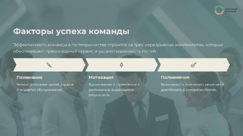 Команда. Факторы успеха Коллеги, часто ли вы задумываетесь, почему в одной команде люди горят работой, а в другой - просто отбывают смену? Или почему одни сотрудники находят возможности удивить гостя, а другие проходят мимо очевидных проблем? Мы тратим ресурсы на подбор, обучение, KPI, но часто упускаем из виду системные факторы, которые и определяют, станет ли коллектив исполнителей сплоченной командой единомышленников. Разберем три неразрывных компонента: 🟣Понимание. Как показать сотруднику его реальный вклад в общий успех? 🟣Мотивация. Как выйти за рамки KPI и зарплаты, чтобы зажечь в команде искру и желание быть лучшими? 🟣Полномочия. Как дать людям право принимать решения, чтобы гости получали помощь здесь и сейчас, а не после череды согласований. Начнем сегодня с понимания. Секрет команд, которые создают не просто хороший, а запоминающийся сервис - в глубоком понимании того, зачем они делают то, что делают. И как их, казалось бы, небольшие действия запускают цепь невероятны