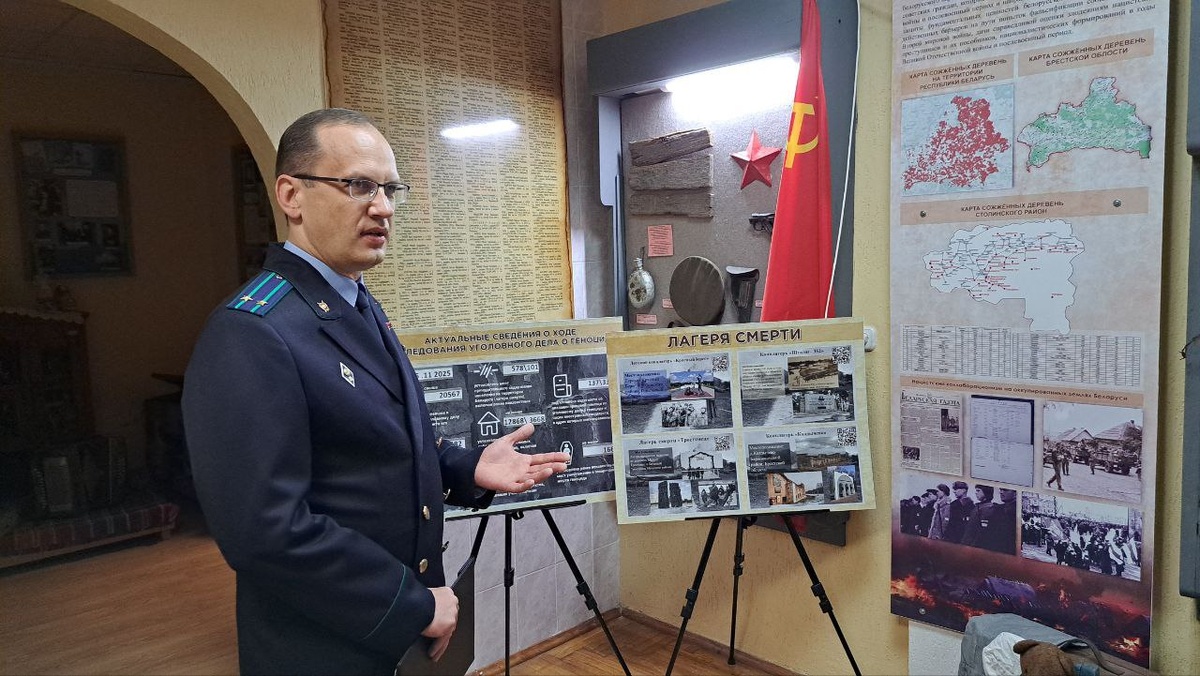 9 декабря отмечается Международный день памяти жертв преступления геноцида, который служит важным напоминанием о необходимости сохранения исторической памяти и предупреждения подобных трагедий в будущем. 🔵В нашей стране принят Закон «О геноциде белорусского народа», что подчеркивает значимость осознания и признания исторических травм, пережитых нацией. 🔵Беларусь пережила фактически два геноцида: Холокост, направленный против еврейского населения, и геноцид белорусов как части восточных славян. Эти события не только привели к массовым жертвам, но и оставили глубокие раны в коллективной памяти народа. Признание этих фактов является важным шагом к исцелению и восстановлению исторической справедливости. Сегодня прокурор Столинского района Александр Федорович встретился с учащимися СШ № 1 г. Давид-Городка на базе Давид-Городокского музея истории города, где была представлена реаэкспозиция "Геноцид белорусского народа в годы ВОВ". Прокурор района обратил внимание присутствующих, что ген