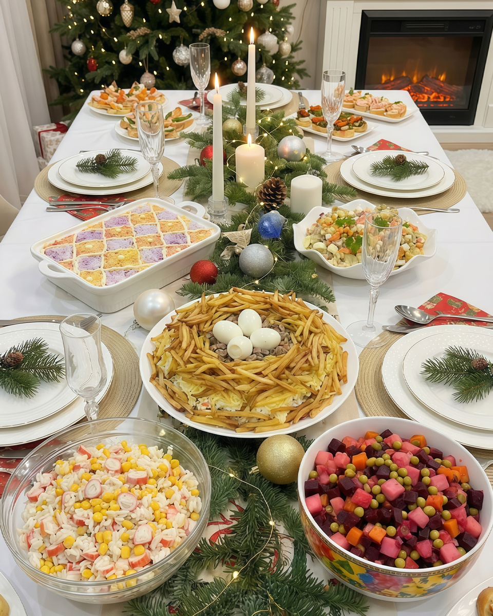 Традиционные новогодние салаты: история новогодней классики. Салаты без которых не обходится ни один новогодний стол🎄