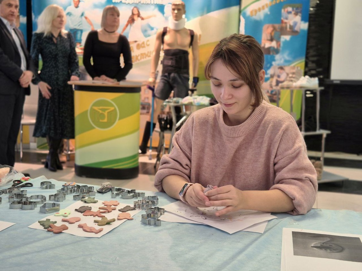 Работы участников арт-студии на базе реабилитационного центра инвалидов во взрослом отделении были представлены на мероприятии, организованным Молодой Гвардией. Туда попали и работы с прошлой выставки, и немножко новых работ, которые мы успели подготовить. Участвовать в таких мероприятиях - дело всегда волнительное потому, что хочется показать всё и сразу и объять необъятное, но я пониманию, что маленькими шагами цель достигается лучше. На мастер-классе в городском концертном зале все желающие могли сделать небольшие сувениры из воздушного пластилина. Как оказалось, работать с таким материалом непросто! Но, к