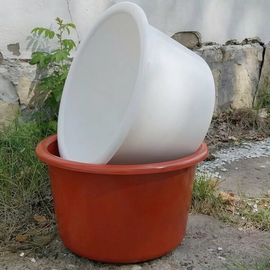 Пластиковые тазы — самые популярные и лёгкие. Их удобно переносить, они не ржавеют, не боятся влаги, легко моются и не требуют особого ухода. Современный прочный пластик выдерживает значительные нагрузки, поэтому такие тазы отлично подходят для сбора урожая, переноса воды, замачивания семян и бытовых задач. Пластиковые тазы бывают ярких цветов, разных форм и объёмов, что упрощает выбор под конкретные задачи.