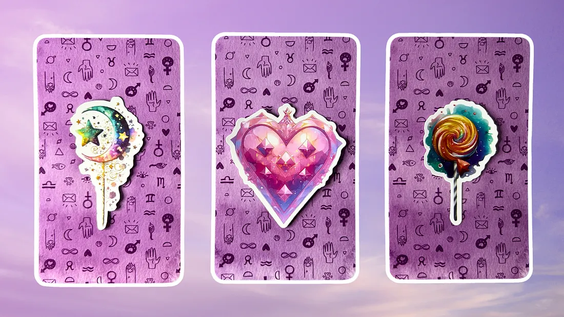 Три стопки карт для расклада: стопка 1 - жезл, стопка 2 - сердце, стопка 3 - леденец на палочке.