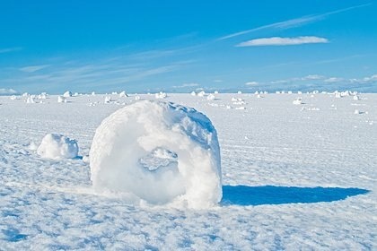 На Камчатке, вблизи аэропорта Оссора, обнаружены снежные рулоны.