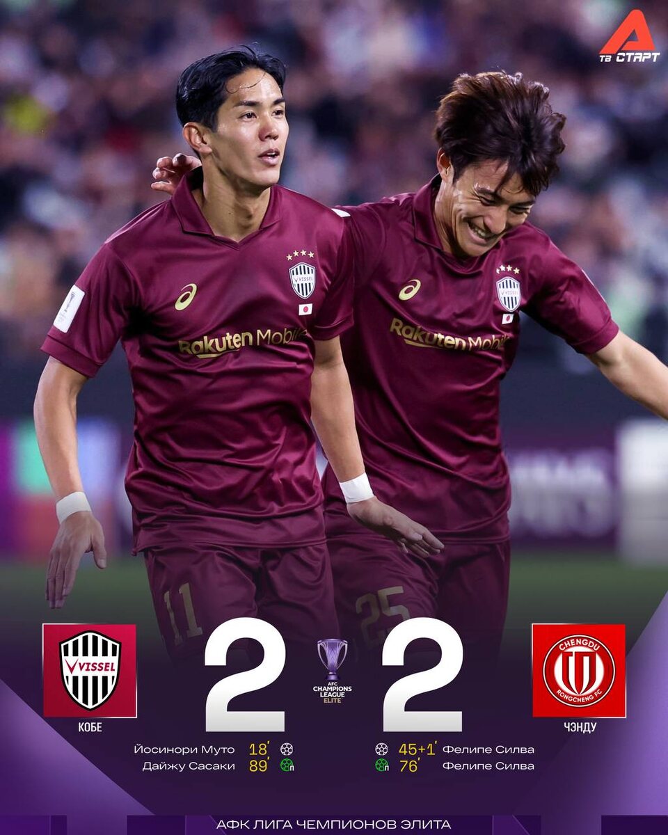 👊🏻 «Кобе» не подпускает никого к первой строчке! Сегодня японцы спасли ничью против «Чэнду» на 89-й минуте и сохранили отрыв от преследователей. «Матида Зельвия» в параллельной игре одолела «Ульсан» (3:1) 💪🏻 Далее смотрите «Бурирам Юнайтед» – «Канвон» на телеканале «Старт» и «Джохор» – «Шанхай Порт» на телеканале «Старт Труимф» 🔥 🛒 Наше приложение в Google Play 💙 Наше приложение в RuStore 🛒 Наше приложение в App Store