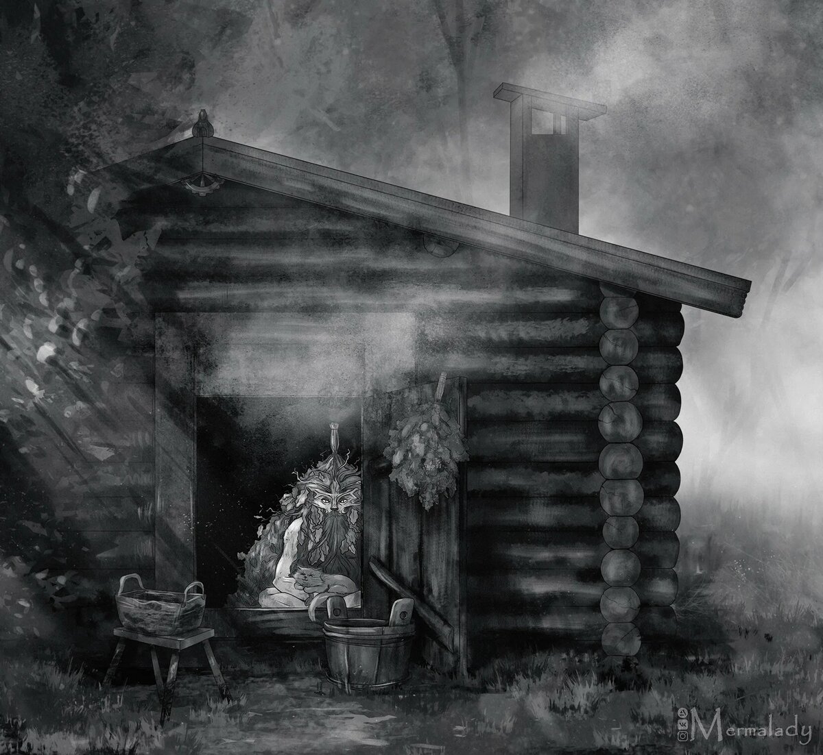 Банник — хранитель пара и тьмы Где-то за околицей, в глухом лесу, стояла старая баня. Не из тех, что строят теперь — из блестящего сайдинга и с душем под потолком. Эта была из чёрных брёвен, с провалившимся крыльцом и дверью, что скрипела, как стон утопленника. Её не топили с тех пор, как умер последний житель деревни — бабка Агния, которую нашли мёртвой прямо на полке, с перекошенным лицом и кожей, будто сварённой заживо. Местные говорили — баня проклята. Но не потому, что в ней умерли. А потому, что в ней живёт. Его звали банник. Он — дух бани, тварь древняя, как сам пар и смрад, витающий после долгой стычки с жаром. Не демон, не чёрт, но нечто среднее — хранитель нечистоты, что стекает с тел, с душ, с мыслей. Он питается тем, что люди оставляют в бане: страхом, болью, злобой. И чем больше грязи в человеке — тем слаще он для банника. Он невидим, пока не захочет. Но те, кто видел — не доживали до утра. Представляют его стариком, голым, с кожей, покрытой плесенью, как мохом. Волосы —