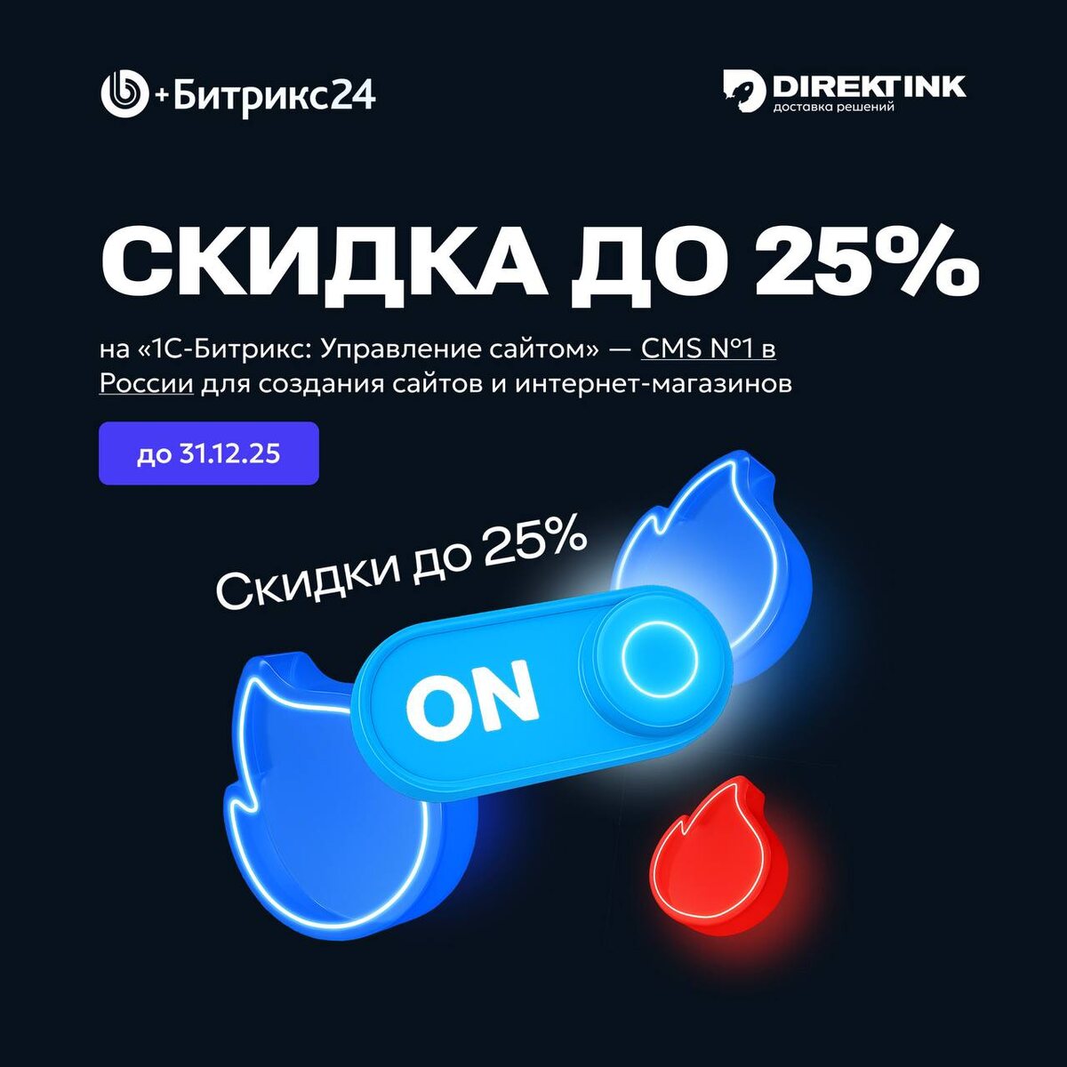 Прямо сейчас — новогодние скидки на Битрикс24 и 1С-Битрикс! 🎁 Год заканчивается, а ваши возможности — нет! Пока все загадывают желания, успейте до 31 декабря подарить своему бизнесу цифровой прорыв — с выгодой и надёжностью. ✨Что спрятано в новогоднем подарке? 1. Битрикс24 — чтобы команда работала, как отлаженный механизм: 💥Облачные тарифы — для продаж, коммуникаций и проектов. Всё в одном облаке! 💥«Коробочные» лицензии — для тех, кто любит кастомизацию под самые смелые планы. 💥Супер-комбо — облако + умный BitrixGPT + доступ к 5000+ интеграциям Маркетплейса. 2. 1С-Битрикс: Управление сайтом — мощный двигатель для вашего онлайн-присутствия: 💥Скидки на все редакции («Старт», «Стандарт», «Малый бизнес», «Бизнес») — идеальный момент для новых клиентов. 💥Выгодный апгрейд — специальные условия для тех, кто готов в новом году перейти на новый уровень. Не просто загадайте улучшения для бизнеса — воплотите их с отличной скидкой. Пусть новый год начнётся с мощного цифрового рывка!