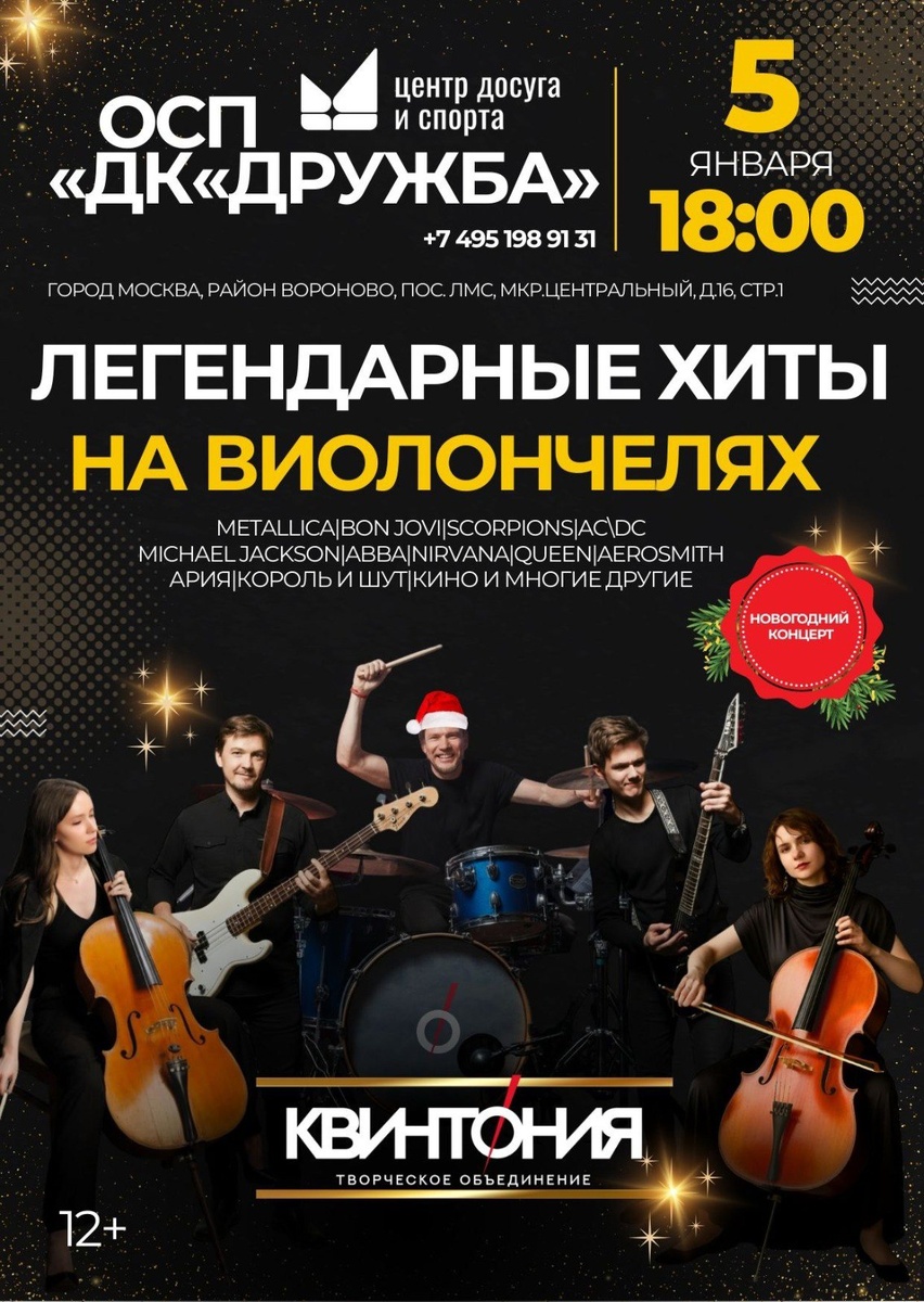 ✨🎶Откройте рок с неожиданной стороны! Феерия легендарных хитов от «Квинтонии»! ✨🎶 Друзья, приготовьтесь к музыкальной революции! Творческое объединение «Квинтония» приглашает вас в захватывающее путешествие по миру легендарных рок-хитов, но в совершенно новом, уникальном звучании! 🎸🎻🥁 Наши музыканты-виртуозы, объединённые в мощный квинтет, переосмысляют бессмертные композиции таких икон рока, как Metallica, Nirvana, AC/DC, Scorpions, Bon Jovi, Michael Jackson, No Doubt, Survivor, Europe, Deep Purple, Aerosmith и многих других! Не упустите возможность погрузиться в этот мощный и эмоциональный музыкальный эксперимент! 🚀 Билеты онлайн по ссылке: https://kvintoniya-druzhba.ticketscloud.org/ #анонсывороново #новоститинао #анонсытинао