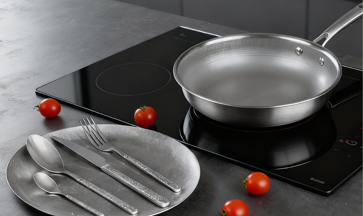 Приготовление вкусной и качественной пищи — это настоящее мастерство, и главный его союзник — правильно подобранная посуда. На рынке представлено огромное разнообразие кухонной утвари: разные материалы, покрытия, функциональные особенности. Особенно популярной становится титановая посуда, которая обещает долговечность, износостойкость и безопасность. Давайте разберемся: какие плюсы и минусы имеет титановое покрытие, и как выбрать надежную и безопасную сковороду. Почему выбирают титановую сковороду? Титан, как материал, признан за свою прочность и долговечность. Он не поддается коррозии, что уже делает его заметным преимуществом по сравнению с некоторыми другими типами посуды. Плюс, титан обладает рядом характеристик, которые делают его идеальным для активной и безопасной готовки: Износостойкая поверхность. Можно использовать металлические ложки и лопатки — покрытие не царапается и не теряет своих свойств. Идеально подходит для тех, кто ценит удобство и долговечность. Высокая термосто