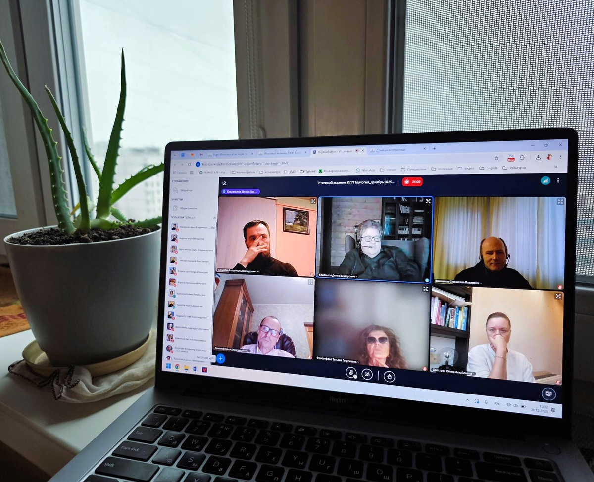 8 и 9 декабря 2025 года в Институте дистанционного образования прошла итоговая аттестация выпускников программы профессиональной переподготовки «Теология». Коллоквиум - непростое итоговое испытание, ведь отвечать на вопросы приходится без времени для подготовки, соединяя в своих ответах полученные за 3,5 года знания по разным богословским дисциплинам. Правда, у учащихся есть возможность готовиться к коллоквиуму заранее, а во время самого экзамена - дополнять вопросы друг друга, тем самым улучшая собственную оценку (если дополнения правильные, конечно). Коллоквиум выпускники сдают в мини-группах, потому что беседы по вопросам порой затягиваются и ответы с дополнениями занимают немало времени. А если учесть, что в аттестации участвовали слушатели из разных регионов - даже из Сахалинской области, где разница во времени с Москвой составила 8 часов, можно представить, что экзаменационный день для всех стал проверкой на стрессоустойчивость и терпение. Однако все 17 учащихся, вышедших на и