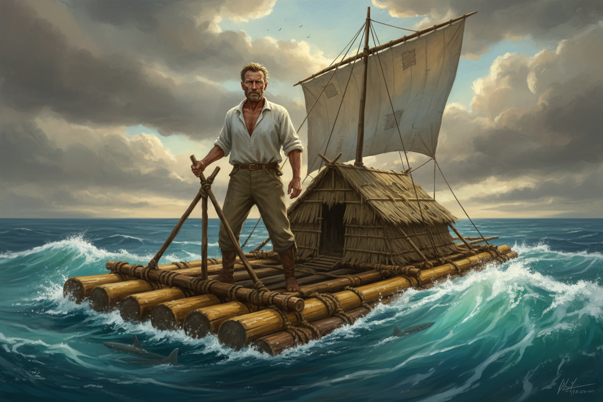 Плот «Кон-Тики» до сих пор стоит в музее Осло. Девять бальсовых брёвен, связанных пеньковым канатом. Без гвоздей, без мотора, без здравого смысла. Но с доказательством того, что невозможное возможно, если достаточно сильно в это верить.