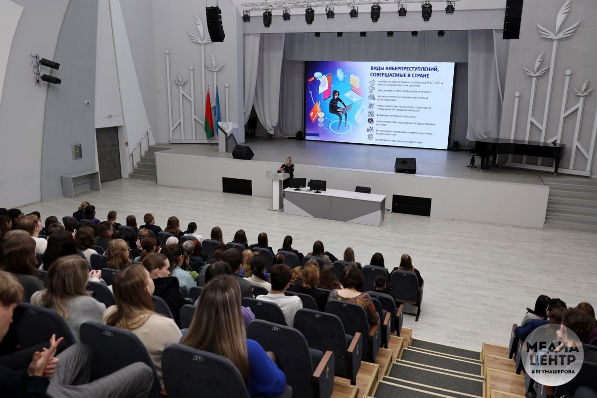 🛡9-го декабря в актовом зале учебного корпуса № 1 ВГУ имени П.М. Машерова прошла встреча на тему «Киберщит: строим свою защиту» 🗣Перед трудовым коллективом и студентами выступила старший оперуполномоченный отдела оперативно-аналитической работы управления по противодействию киберпреступности криминальной милиции УВД Витебского облисполкома старший лейтенант милиции Колдыбова Юлия Сергеевна, которая остановилась на таких вопросах, как рост кибератак в Беларуси, виды киберпреступлений, совершаемые в нашей стране, использование искусственного интеллекта, а также пояснила, как определить портрет жертвы мошенничества, и рассказала о ключевых правилах безопасности в сети детей и подростков. ➡️Информационные материалы #новости