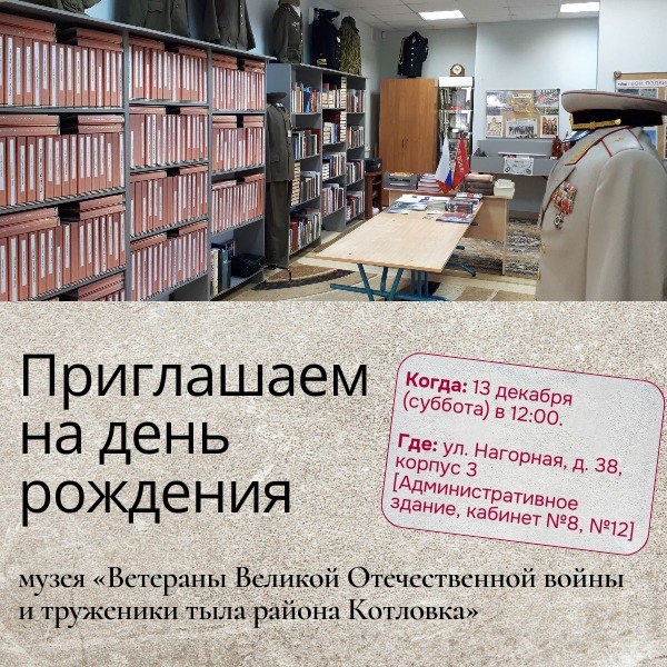 🎂 Музей "Ветераны ВОВ и труженики тыла района Котловка" Приглашает на День Рождения