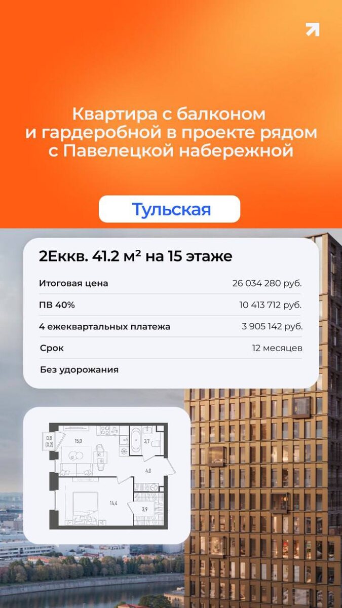 Новые рассрочки в проекте Pave в декабре 🔵 На все квартиры, срок на 24 месяца – ПВ 30%, далее ежемесячные платежи 0,5% – 10% на 12 месяц; 10% на 18 месяц – Остаток на 24 месяц Доступна скидка 5% 🔵 На студии и 1ккв, срок до 12 месяцев – ПВ 40%; равные ежеквартальные платежи – Без удорожания 🔵 На 2ккв, 3ккв, 4ккв, срок до 12 месяцев – ПВ 30%; равные ежеквартальные платежи – Без удорожания 🔵 На студии и 1ккв, срок до 18 месяцев – ПВ 40%; платеж 150 000 руб. в месяц – Без удорожания 🔵 На 2ккв, 3ккв, 4ккв, срок до 18 месяцев – ПВ 30%; платеж 200 000 руб. в месяц – Без удорожания 💭 В карточке пример расчета по 2Еккв. 41.2 м² с балконом. Базовая стоимость: 26 034 280 руб.