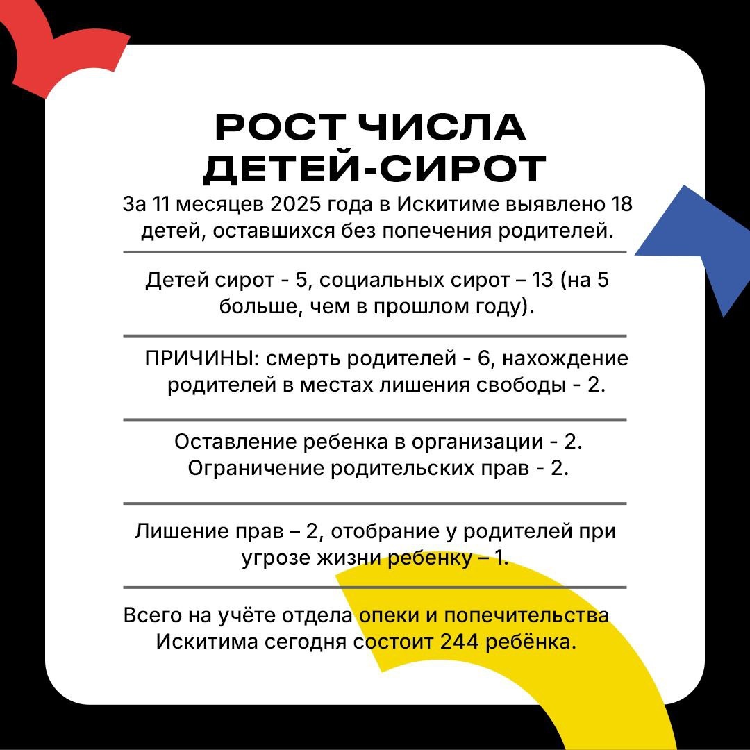 О росте количества детей-сирот с аппаратного совещания в Искитиме в инфографике от ТВК